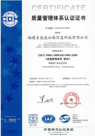 在公司領(lǐng)導(dǎo)及各部門的不懈努力下,經(jīng)過認(rèn)證公司專家的全面、嚴(yán)格、細(xì)致的指導(dǎo)和審核,確認(rèn)我司符合ISO9001:2008質(zhì)量管理體系標(biāo)準(zhǔn)的要求,資質(zhì)范圍內(nèi)的計(jì)算機(jī)應(yīng)用軟件開發(fā)、信息系統(tǒng)集成順利通過質(zhì)量體系認(rèn)證,并于2016年10月31日,向我公司正式頒發(fā)了ISO9001質(zhì)量管理體系認(rèn)證證書。