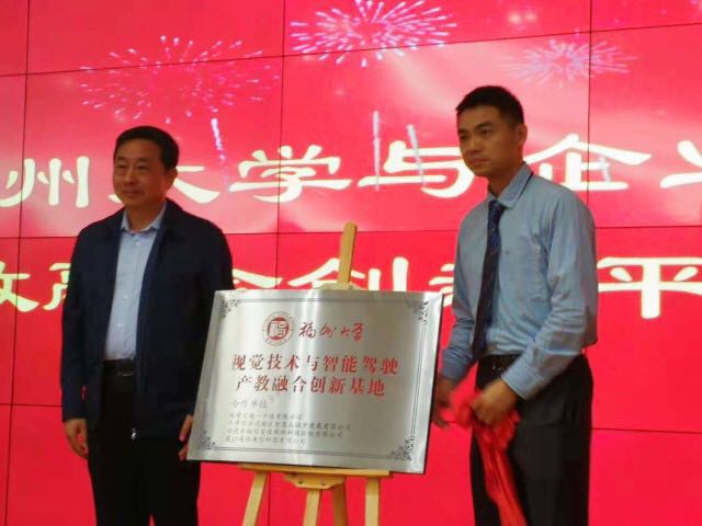 10月14日,由我司與福州大學共建的“視覺技術與智能駕駛產教融合創(chuàng)新基地”揭牌儀式在福州大學舉行。我司王輝董事長與福州大學物理與信息工程學院學科帶頭人陳志峰教授共同揭牌。